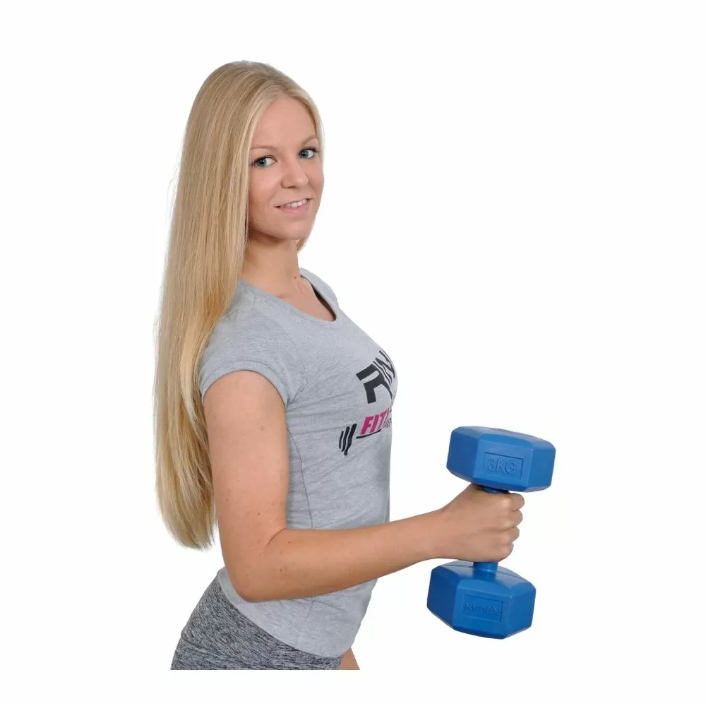 • bučica plastična 1x3kg, za aerobne vježbe i oblikovanje ruku i gornjeg dijela tijela,
