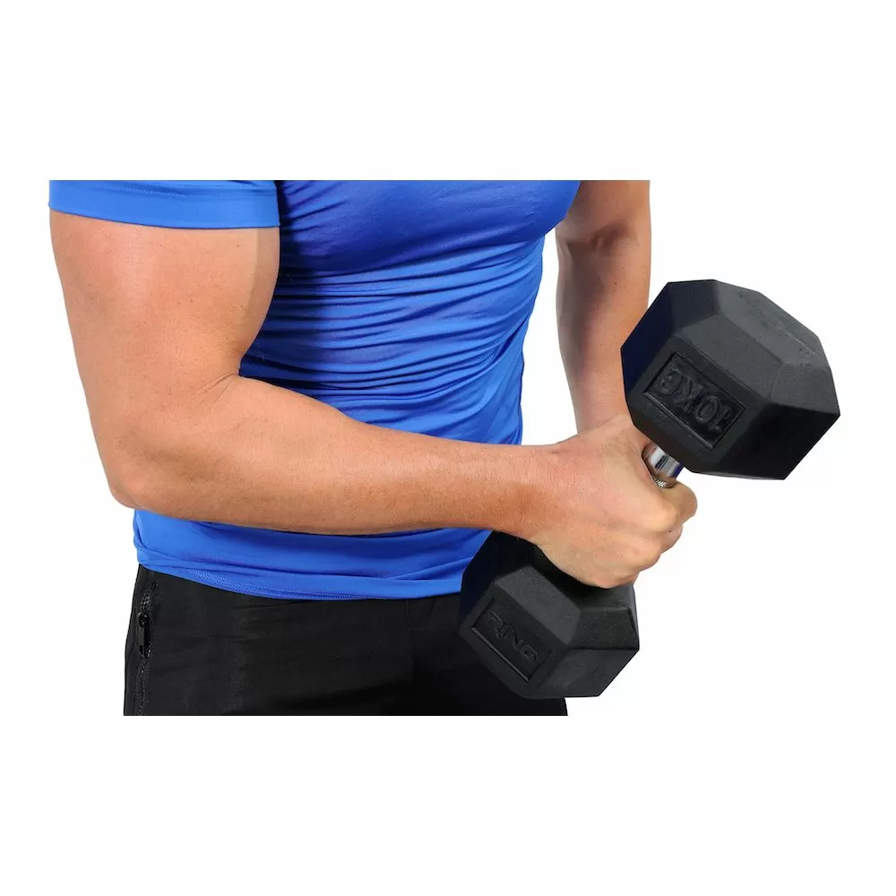 -zbog svog hex oblika, bučica se ne može neočekivano otkotrljati