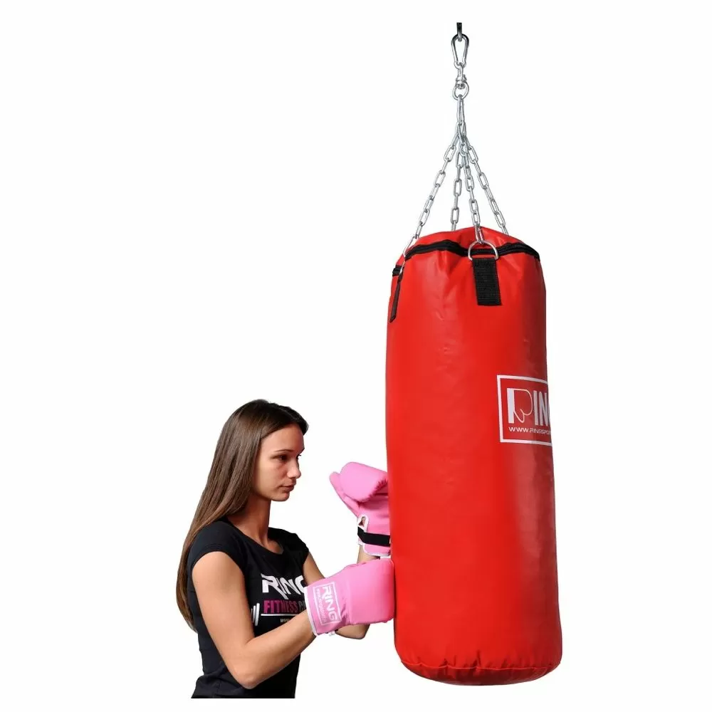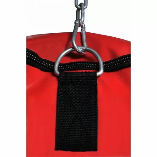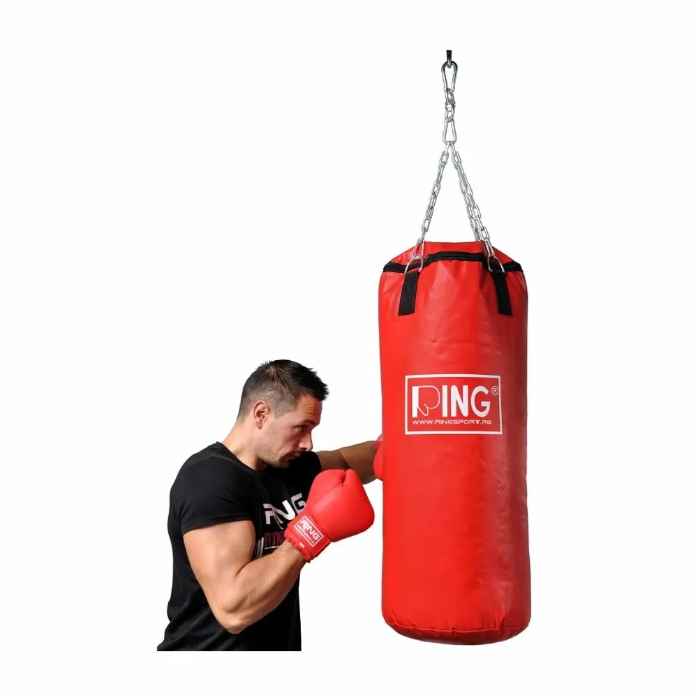 Opis: Boksačke vreće izrađene su od nove generacije materijala (jakog plastificiranog materijala) koji je ljepši, jači i puno jeftiniji od kože. Inače, sve najpoznatije svjetske tvrtke sada izrađuju bokserske vreće od ovog materijala. Puni se tekstilnim restlesima koji se lako pune u vrećicu. Trenutno lansiramo nove modele koji imaju izniman dizajn. Na vrhu se nalaze lanci sa stropnim nosačem. Osnovne boje su plava, crvena i crna, iako postoji mogućnost izrade bokserske vreće po želji kupca u pogledu posebne dimenzije i boje.